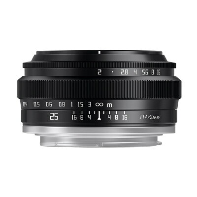 購入したのは、銘匠光学 TTArtisan 25mm f/2 C APS-C 単焦点マニュアルレンズ。中国メーカー製ですが、日本国内の販売店から保証付きで販売されており安心感があります。主な仕様は以下の通り(取扱店サイトより引用)。EF-Mマウントの他、各社向けのラインナップがあります。